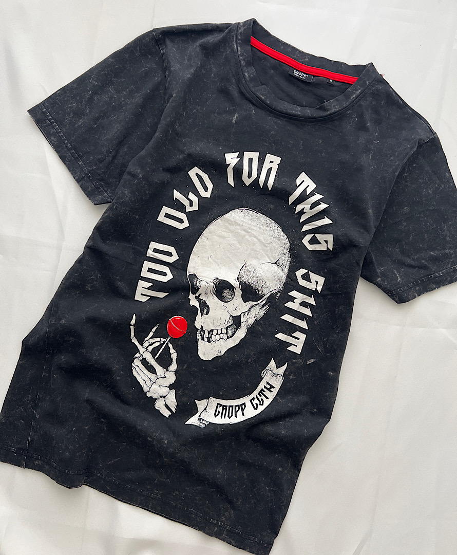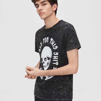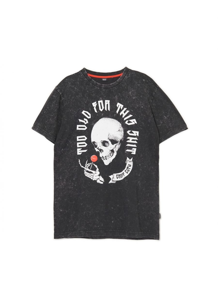 تیشرت سنگشور ذغالی طرح اسکلت cropp