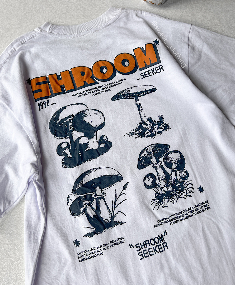 تیشرت pull&bear سفید طرح قارچ