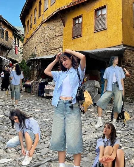 شلوارک بگی برشکا آبی چرک