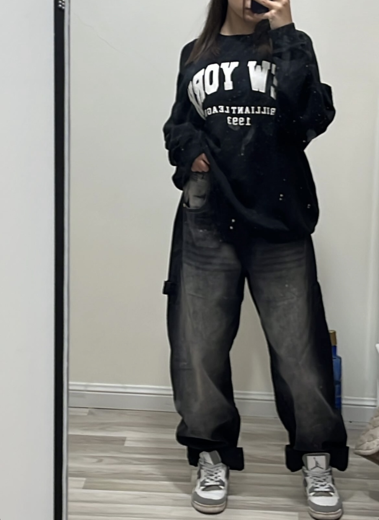 شلوار بگ کارپنتر ذغالی سنگشور خاکی برشکا