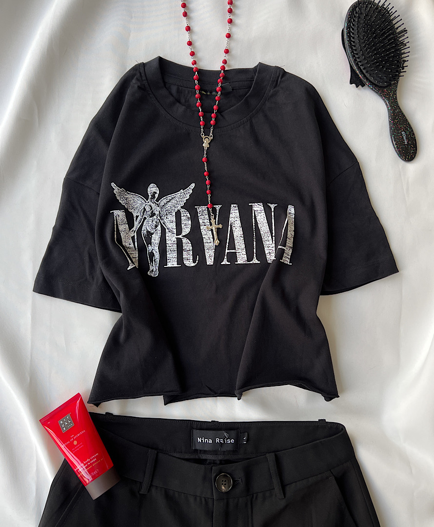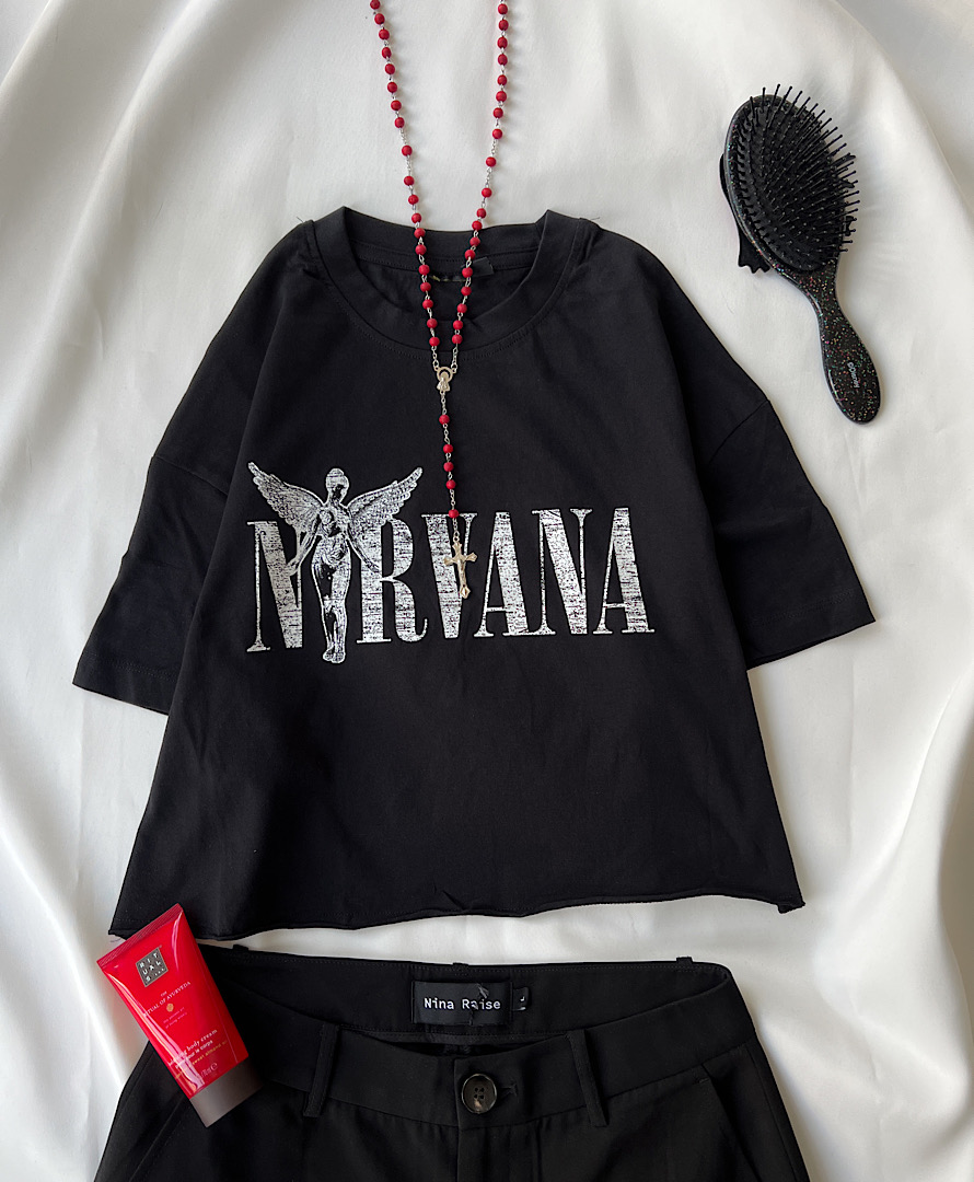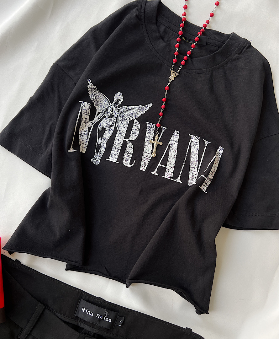 کراپ تیشرت مشکی نیروانا